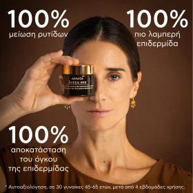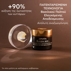 Η πεμπτουσία της κυψέλης σε μια μοναδική σειρά, που συνδυάζει την αναγεννητική ισχύ του βασιλικού πολτού με τις προστατευτικές και αναζωογονητικές ιδιότητες της πρόπολης και του μελιού. Η APIVITA προσφέρει την απόλυτη φροντίδα στην αντιγήρανση με την αξεπέραστη QUEEN BEE.
