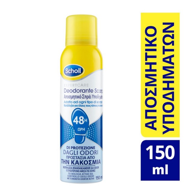 Τώρα μπορείτε πλέον να βγάζετε με άνεση τα παπούτσια σας, χάρη στο Αποσμητικό Σπρέι Υποδημάτων Scholl Expert Care με ειδική σύνθεση διπλής δράσης: εξουδετερώνει άμεσα τις οσμές στο εσωτερικό των υποδημάτων, ενώ περιέχει παράγοντες που καταπολεμούν βακτήρια και μύκητες στο εσωτερικό των παπουτσιών χαρίζοντας έτσι 48ωρη προστασία από την κακοσμία και μοναδική αίσθηση φρεσκάδας.