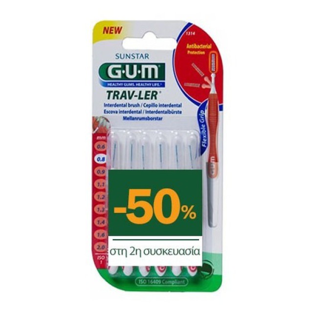 Gum 1314 Μεσοδόντια Trav-Ler Tapered 0,8mm 6τμχ 1+1 με -50% στο 2ο Προϊόν