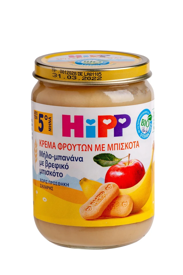 HIPP ΒΡΕΦΙΚΗ ΚΡΕΜΑ ΜΕ ΜΗΛΟ ΜΠΑΝΑΝΑ ΜΠΙΣΚΟΤΟ 190gr
