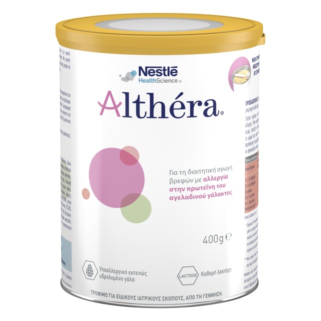 Το Althéra είναι ένα ειδικό γάλα για βρέφη με συμπτώματα αλλεργίας στο αγελαδινό γάλα (Διαιτητικό Τρόφιμο για Ειδικούς Ιατρικούς Σκοπούς).