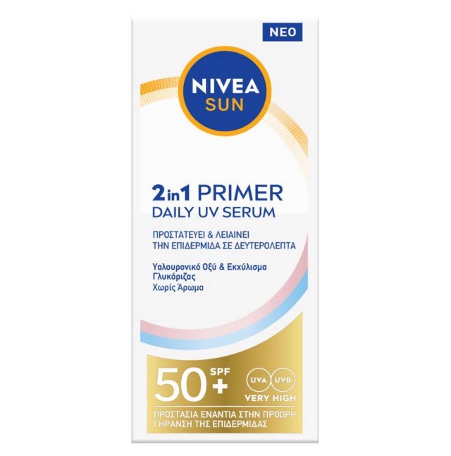 Το NIVEA SUN UV Face 2in1 Primer Serum SPF 50+ αναπτύχθηκε ειδικά για να προστατεύει και να λειαίνει την επιδερμίδα του προσώπου σε δευτερόλεπτα.