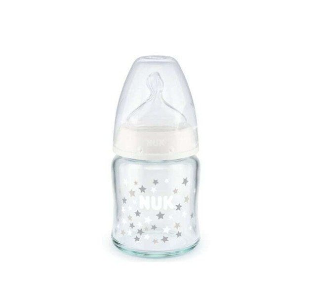 Nuk First Choice Plus Μπιμπερό Γυάλινο για 0-6m με Θηλή Σιλικόνης Λευκό 120ml 1τμχ
