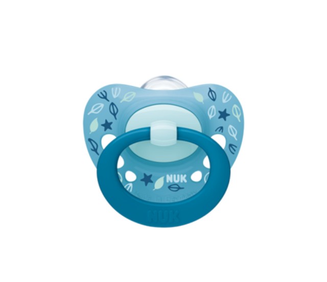 Nuk Signature Πιπίλα Σιλικόνης με Θήκη Σιέλ Φυλλαράκια 6-18m 1τμχ