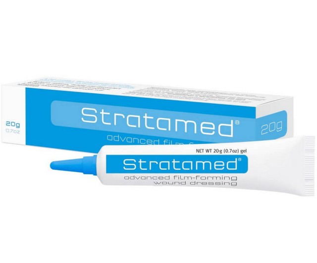 Αφού στεγνώσει, το Stratamed μπορεί να καλυφθεί από αντιηλιακή κρέμα, μακιγιάζ, πιεστικούς επιδέσμους ή εκμαγεία.