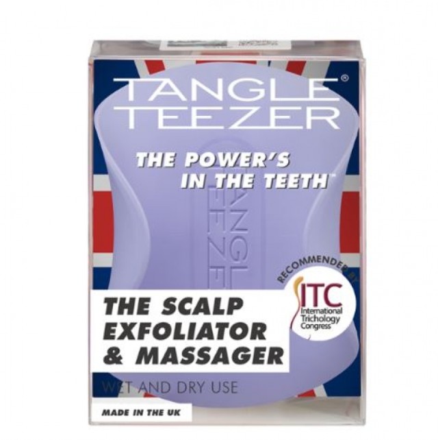 H Tangle Teezer The Scalp Exfoliator and Massager  Lavender Lite απολεπίζει και αναζωογονεί το τριχωτό της κεφαλής, κάνοντας χαλαρωτικό μασάζ: Τα μακριά και εύκαμπτα δόντια απολεπίζουν από τους ρύπους και τα νεκρά κύτταρα, αναζωογονούν και προετοιμάζουν το δέρμα για την καλλυντική περιποίηση.